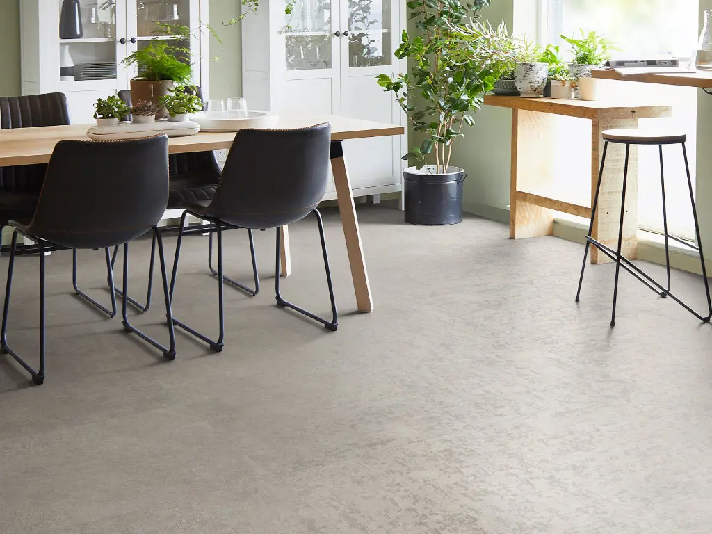 Expona Commercial 5067 – tai betono tipo grindų dizainas su šiek tiek ryškesne, modernia tekstūra ir neutraliu pilku tonu, kuris suteikia erdvei šiuolaikišką, minimalistinį charakterį. Raštas yra subtilus, natūralus ir neperkrautas, todėl grindys atrodo švarios, tvarkingos ir lengvai derinamos prie įvairių interjero stilių – nuo industrinio iki skandinaviško ar modernaus klasikinio. Šis dizainas skirtas erdvėms, kur svarbi neutrali, bet vizualiai įdomi betoninė estetika, kuri įneša ramybės ir architektūrinio vientisumo.