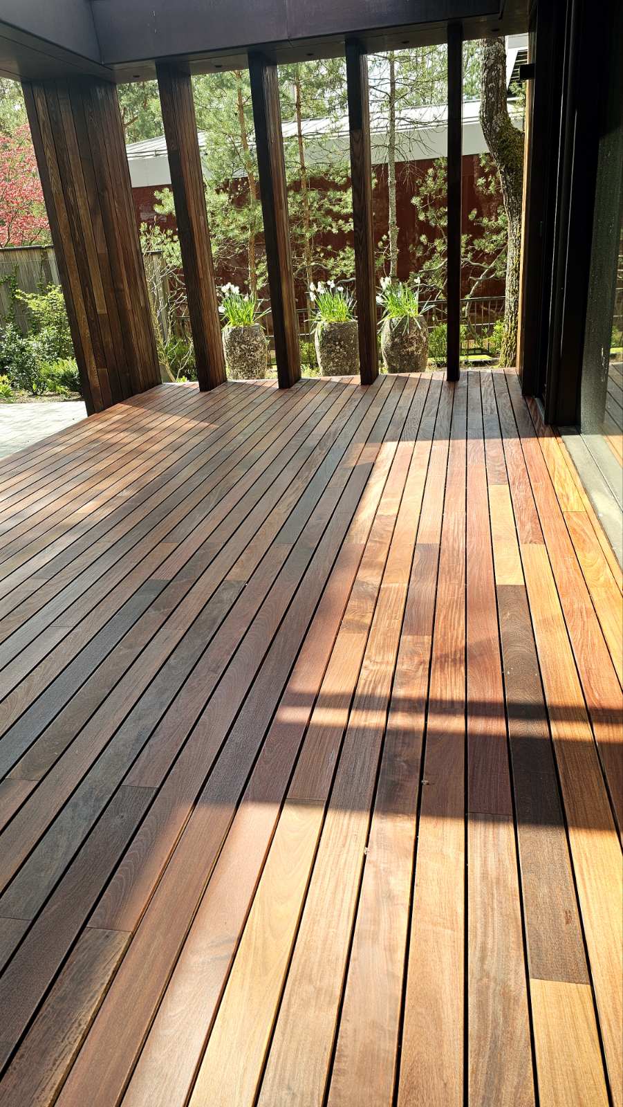 Terasos projektas įgyvendintas naudojant Softline terasų sistemą ir IPE medieną. Natūrali mediena suteikia jaukumo, o sistema užtikrina tvarkingą ir patvarų sprendimą.