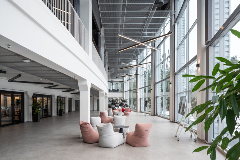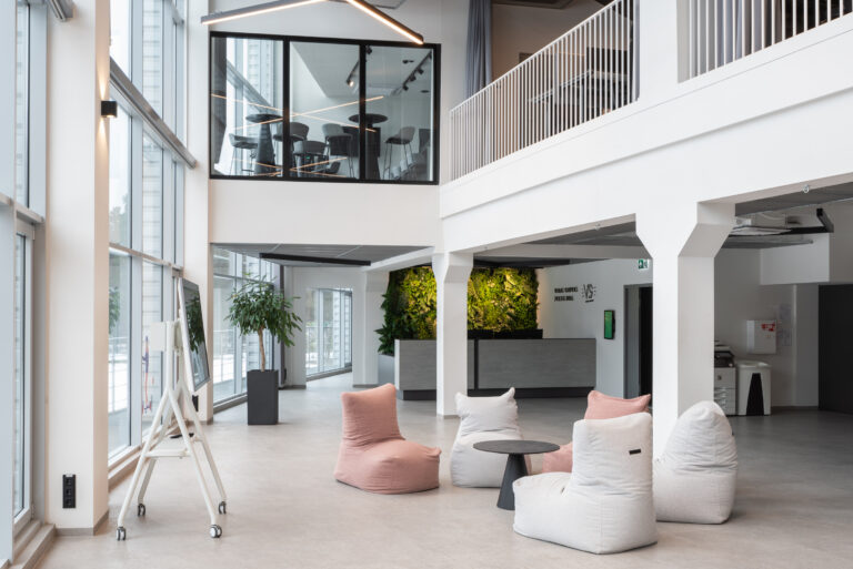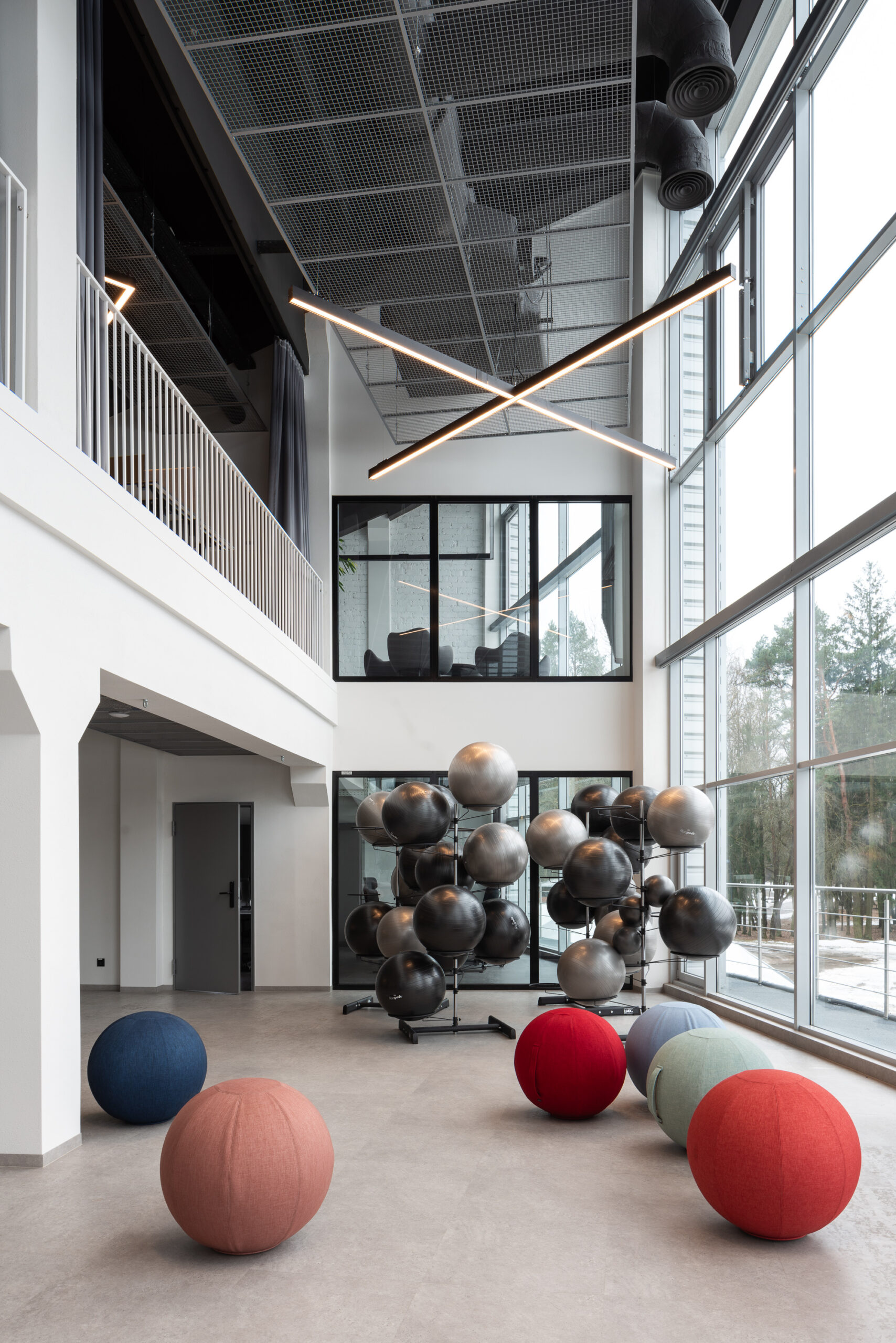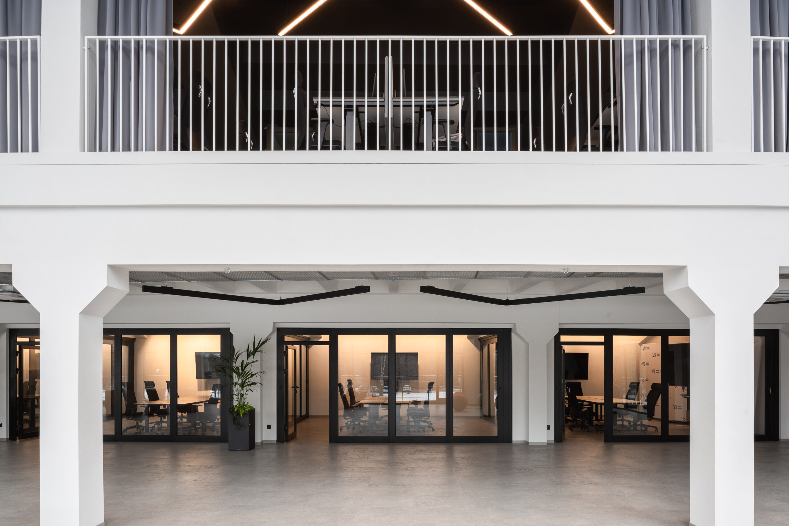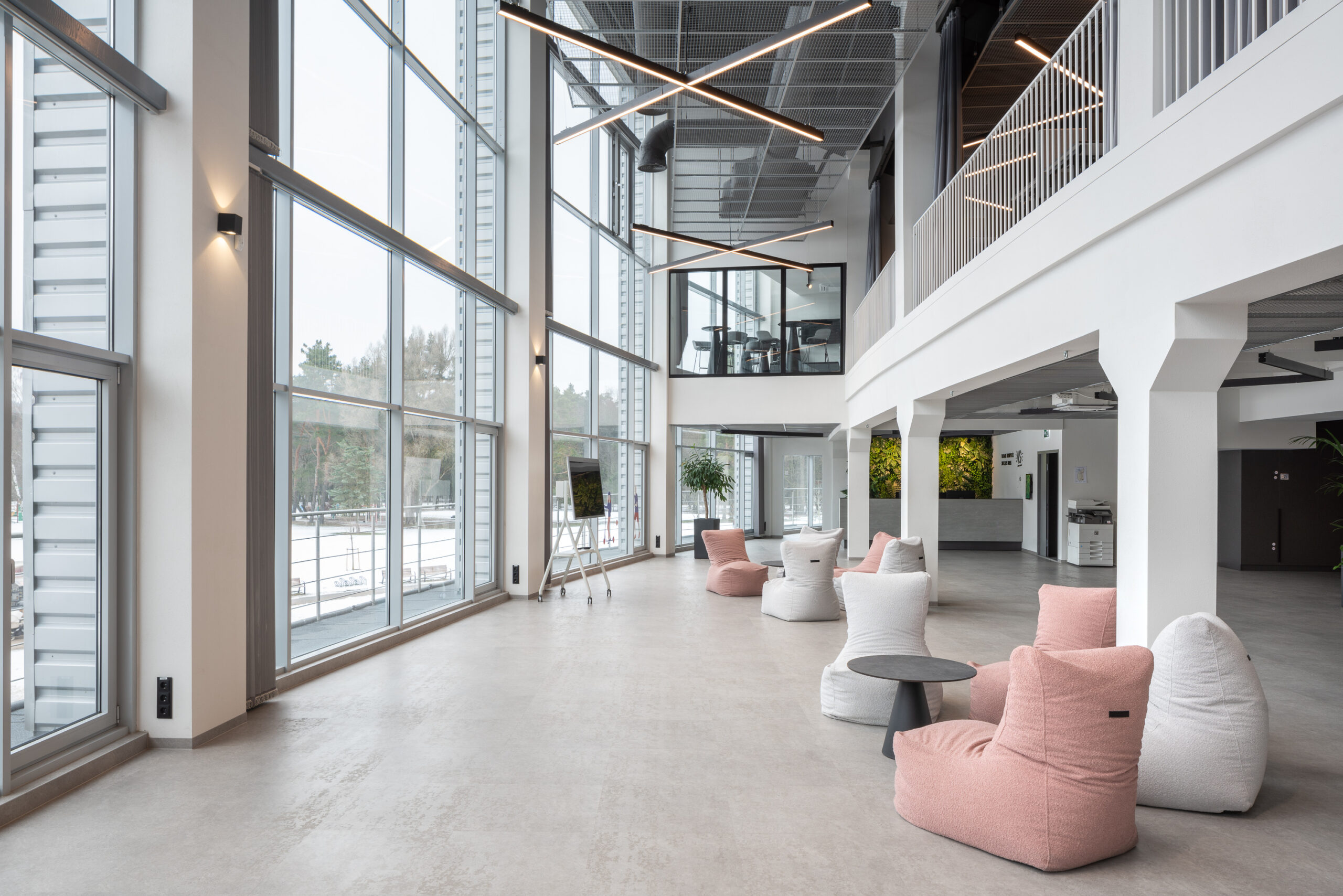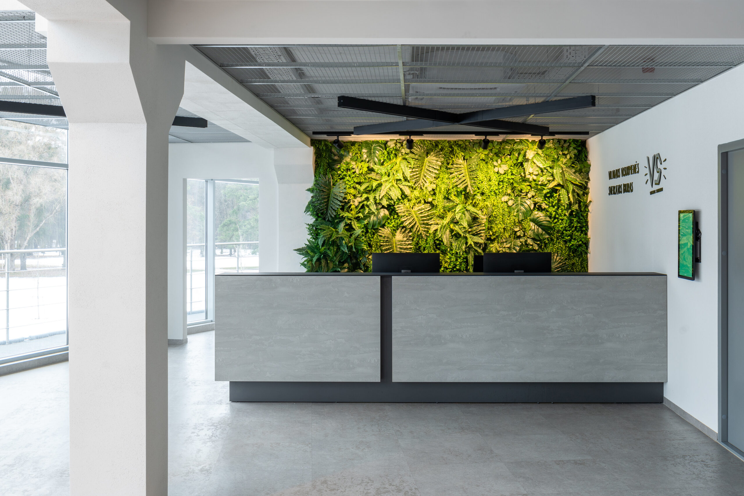Interjero koncepcija sukurta atsižvelgiant į išskirtinę pastato struktūrą ir kontekstą. Vyrauja industrinio ir minimalistinio stiliaus estetika. Projekte panaudotas betono dizainas turi švelnius spalvinius perėjimus ir matinį struktūrinį paviršių, artimą šlifuotam betonui. Dėl savo tikroviškumo šis dizainas itin vertinamas profesionalų: interjero dizainerių bei architektų.
